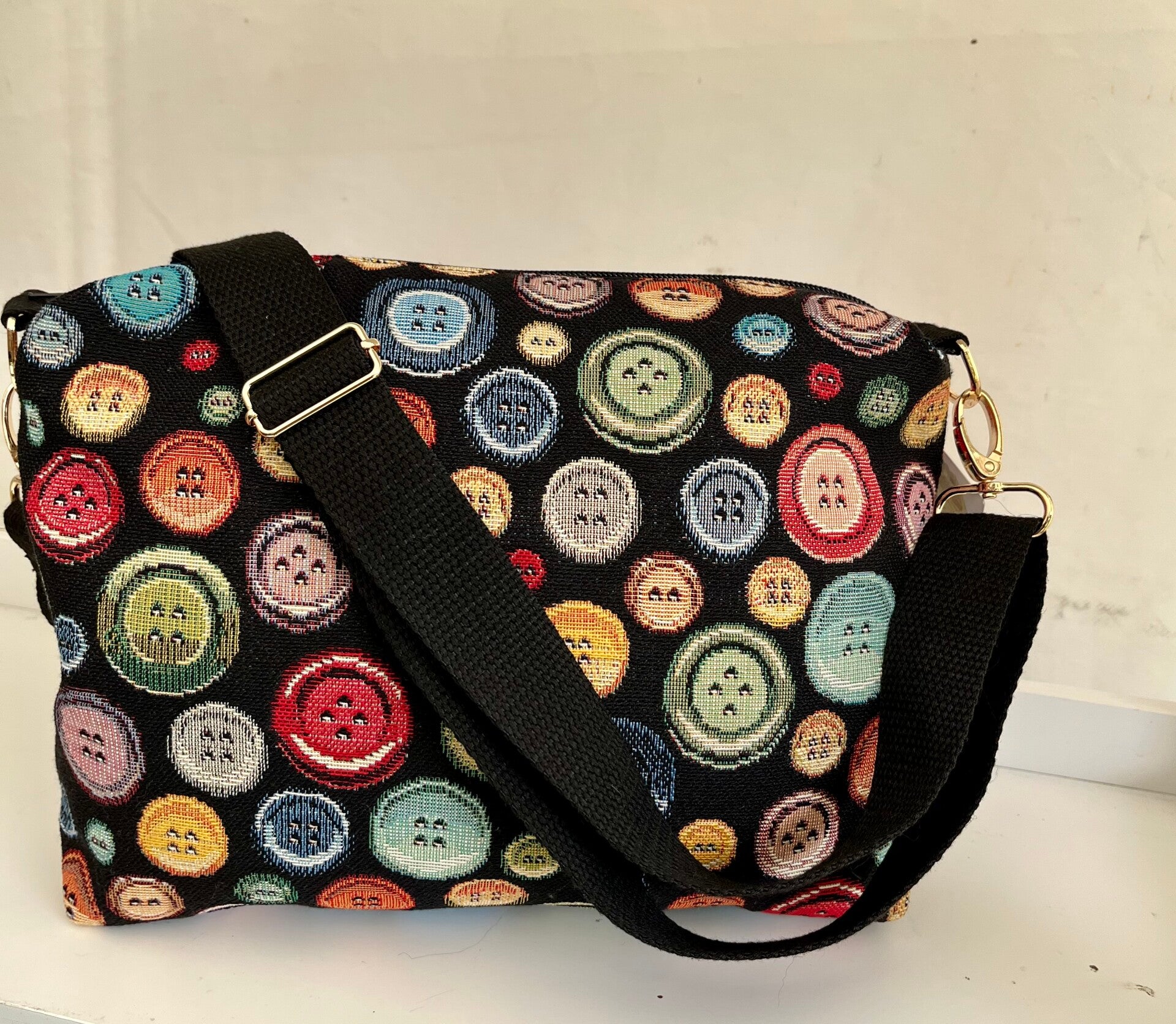Crossover taske i gobelin .Gobelinen er produceret i EU og er Økotex