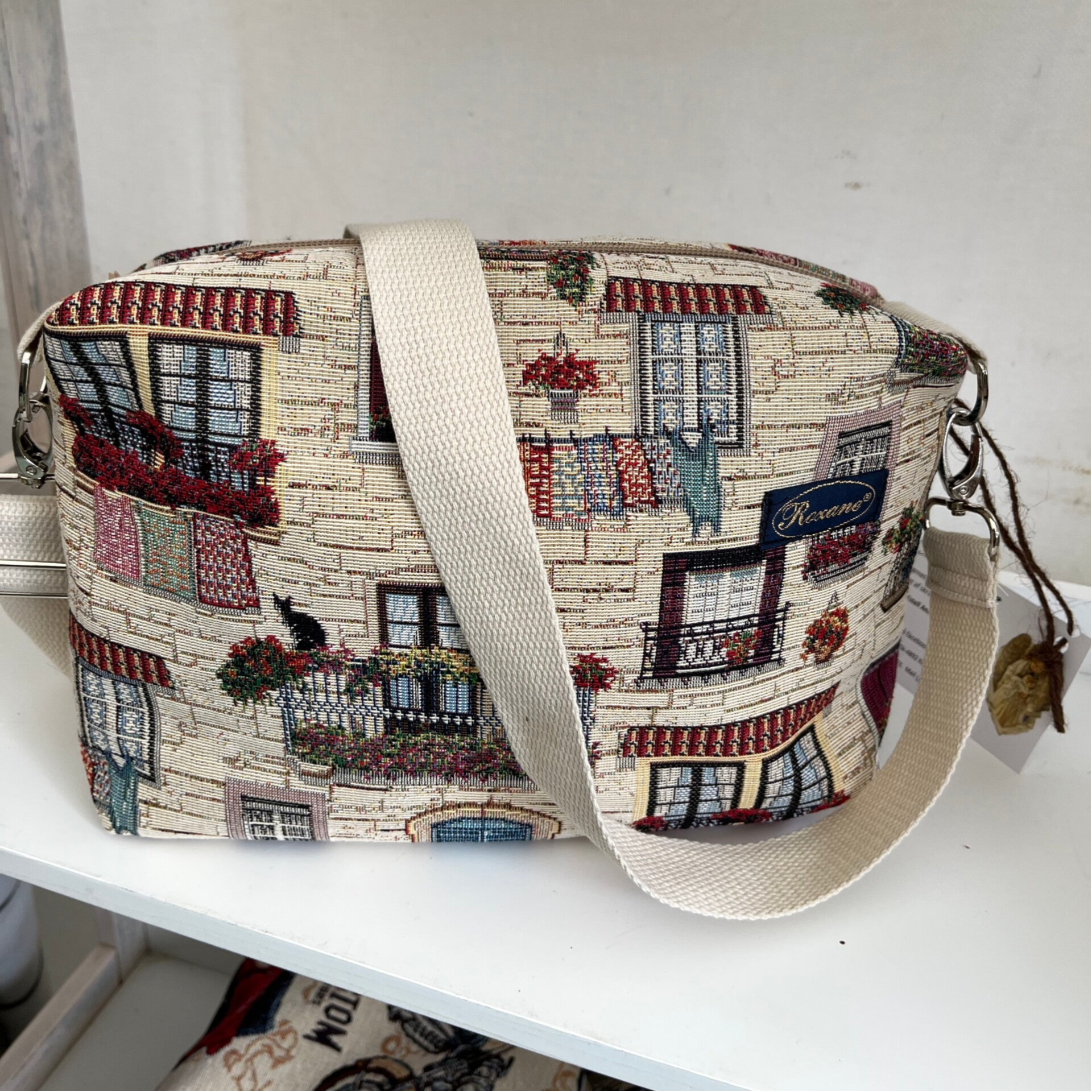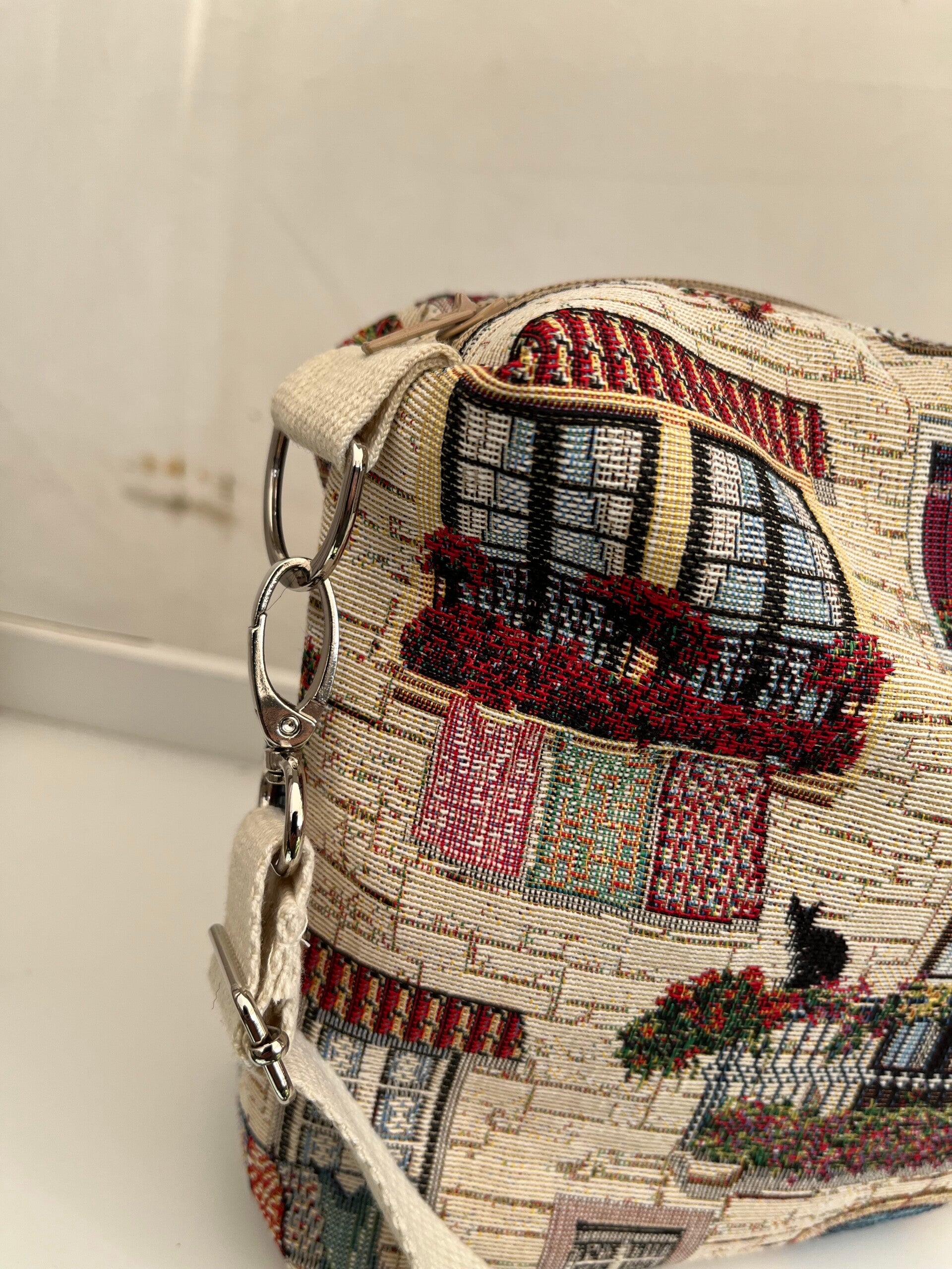 Crossover taske i gobelin .Gobelinen er produceret i EU og er Økotex