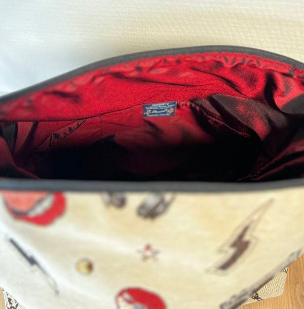 ...hanke i kernelæder nittet på . Str:.h. 38cm b. 39cm bund 10 cm